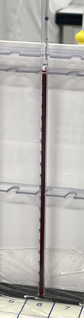 大学の実験で自分の血液を使って、赤血球沈降速度というものを測りました。名前は少し難しそうですが、これは血液が落ちるスピードを測って、落ちる速度が速いか遅いかで自分の体内で炎症が起きているかを見る実験です!